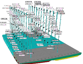 ????實現(xiàn)這一突破的是黃埔文沖為新加坡太古公司建造的2750箱集裝箱船2號船H5531。通過全站儀采集艙內(nèi)導(dǎo)架數(shù)據(jù),利用計算機(jī)將導(dǎo)架間數(shù)據(jù)模型與集裝箱數(shù)據(jù)模型進(jìn)行對比分析,從而實現(xiàn)模擬試箱。通過對H5531船全船導(dǎo)架數(shù)字化模擬,并將其與傳統(tǒng)實體試箱進(jìn)行對比,狀態(tài)完全吻合。