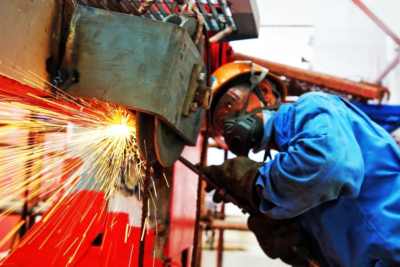 電焊工,就文沖修造最美的一線工人,他們從頭到腳“全副武裝”,一副墨鏡,一個面罩,一套包裹的嚴嚴實實的工作服是他們的色調(diào)。此起彼伏吱吱作響的燒焊聲,黃紅藍色的焊花,伴著刺眼的弧光,如噴泉一般是他們奏響的樂章。