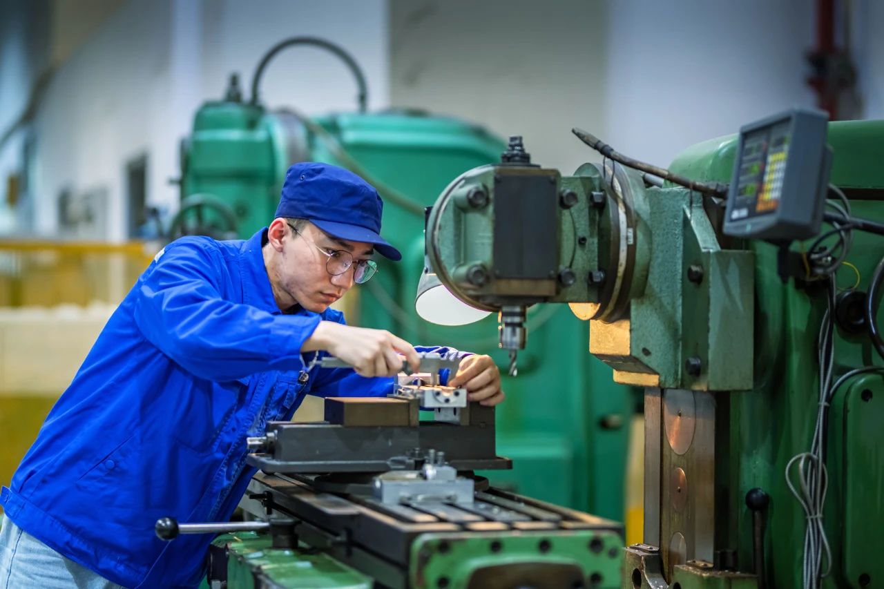 七一五所裝備生產(chǎn)部的技術(shù)工人正在認真操作,他們的工作容不了一絲絲的誤差,要做就要做到分毫不差。