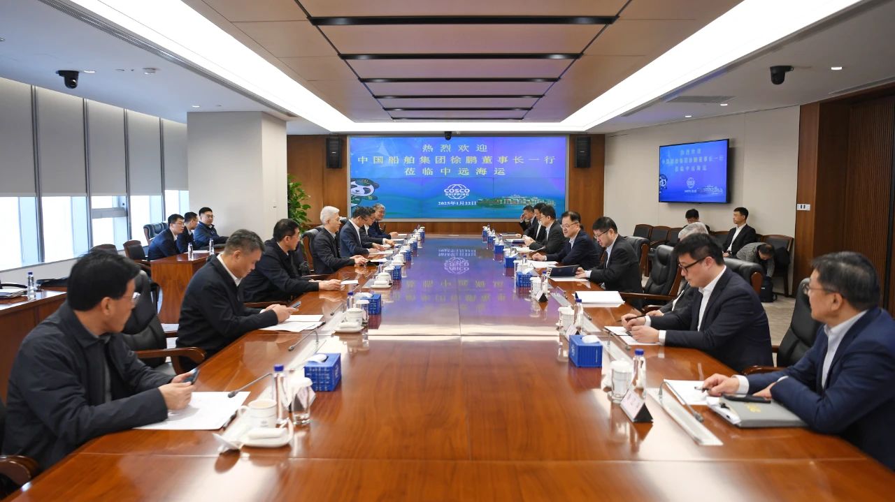1月22日,中國船舶集團有限公司黨組書記、董事長徐鵬一行拜會中國遠洋海運集團有限公司黨組書記、董事長萬敏。雙方圍繞深入貫徹落實黨的二十屆三中全會精神和中央經濟工作會議精神、加快綠色和數字化轉型、攜手推動我國航運業和造船業高質量發展等主題,進行了深入交流,并達成了共識。中船集團黨組成員、副總經理胡賢甫,中遠海運集團黨組成員、副總經理、總會計師孫云飛參加會談。