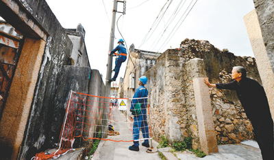 南方電網廣東汕頭金平供電局運維人員對當地一處舊線路進行改造。(潘軍 攝)