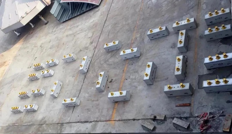 這么干!黃埔文沖建造團隊設計了“矮支墩+可調支撐頭”的矮支墩體系,確保管節澆筑水泥后起浮出塢時不受到支墩的干涉,首次在船塢內采用矮支墩體系,實現了大尺度、深吃水、超寬超重的鋼殼沉管與船舶共塢建造。