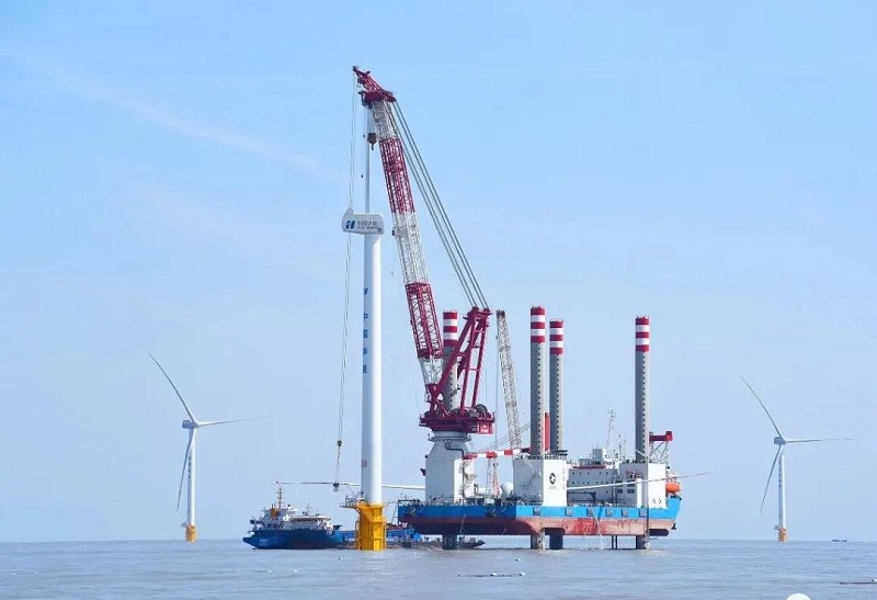 ????本次安裝難度大,30號風(fēng)機(jī)單葉片長73.5米,旋轉(zhuǎn)直徑達(dá)158米,輪轂高度81米。塔筒共分為底、中、頂三段,風(fēng)機(jī)整體總重量790噸以上,相當(dāng)于500余輛小汽車的重量。“振江號”平臺安裝3臺1800千瓦電力推進(jìn)全回轉(zhuǎn)舵槳,配備3臺750千瓦艏側(cè)推裝置。航速7節(jié),續(xù)航能力達(dá)3000海里,定員100人,平臺最大作業(yè)水深50米,甲板作業(yè)面積約2500平方米,可容納3套6兆瓦級風(fēng)機(jī)或2套8兆瓦級風(fēng)機(jī),并且可以獨(dú)立完成6兆瓦、8兆瓦級風(fēng)機(jī)的安裝和其他水上工程施工的起重、打樁、吊裝和運(yùn)輸?shù)茸鳂I(yè)。